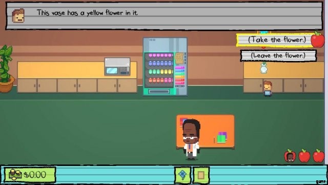 - スティービーの注意をそらすことに同意するカーラと話してください。彼がいなくなったら、教師用ラウンジに入り、黄色い花をつかみます。