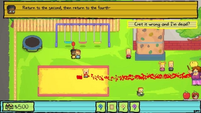 - モンティに話しかけて、学校の右側にある車椅子用スロープを使用するために $3.00 を支払います。