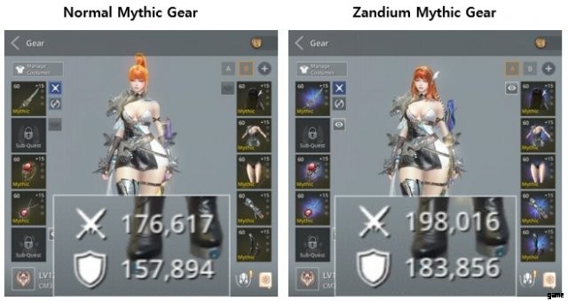 ※あくまでザンジウムギアとザンジウムギア以外の比較です。ルーン、効果、ソウル ストーン、ミッション レベルなど、他のすべての要素は比較対象と同じです。
