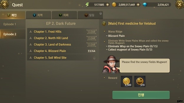 [メイン] タブには、キャラクターが進めているすべてのメイン クエストが表示されます。