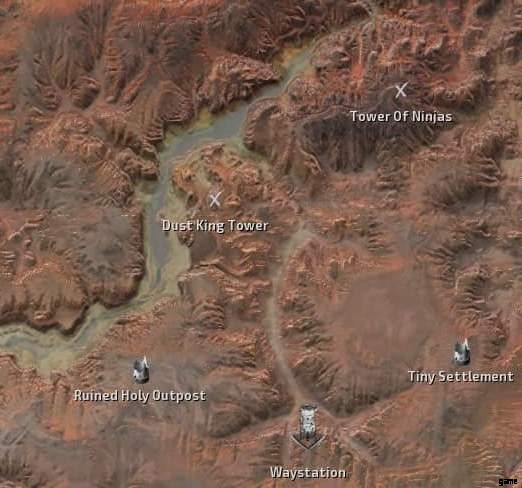 これを行うには、Mongrel から南に向かい、ハブに行き、そこからダスト キング タワーに行きます: