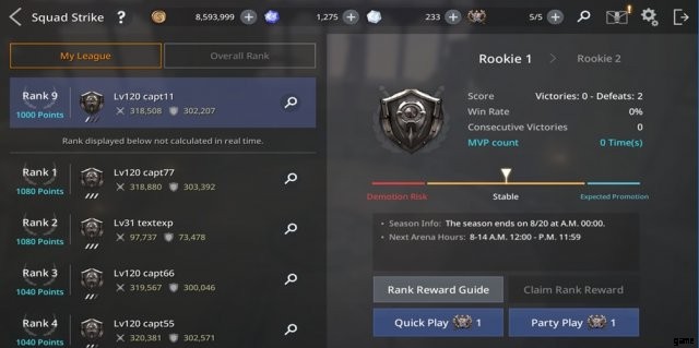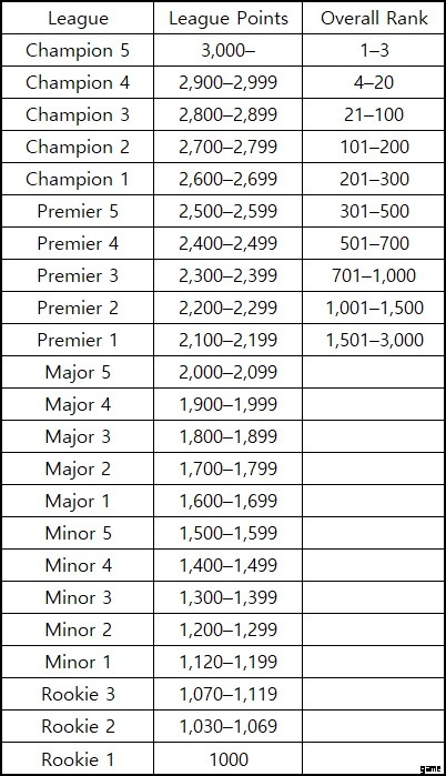スクワッド ストライクには、ルーキー、マイナー、メジャー、プレミア、チャンピオンの 5 つのリーグがあります。
