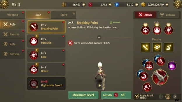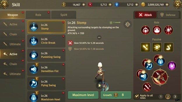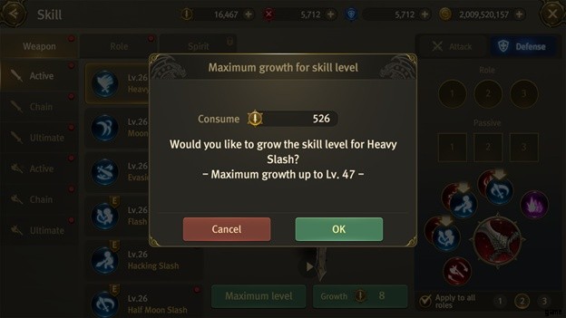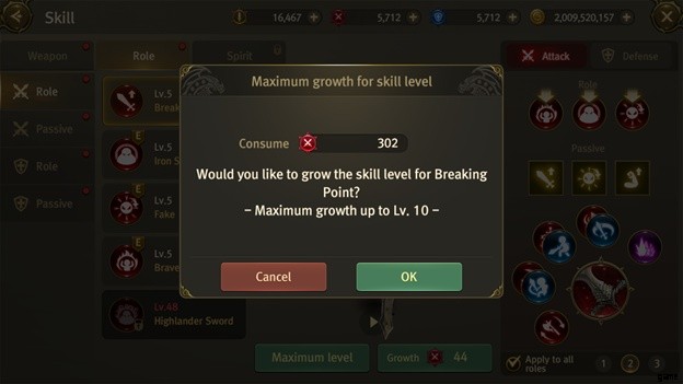 必要なロール スキル ポイントを確認し、[成長] をタップしてスキルをレベルアップします。