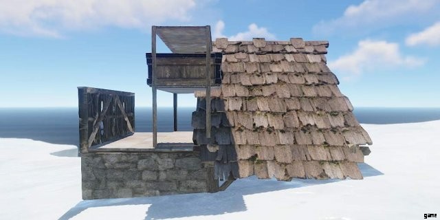 小枝の土台の上に、屋根を置き、後で壊せるように木にアップグレードします。