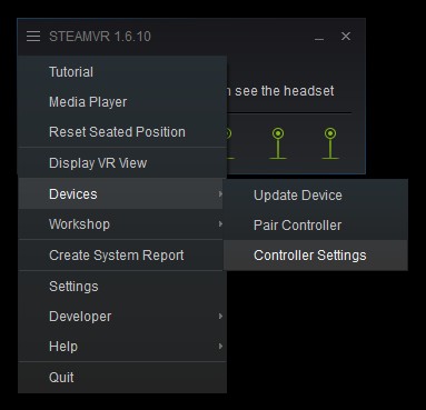 ヘッドセット内の SteamVR アプリケーションからこれらの設定にアクセスすることは可能ですが、これらはすべてデスクトップ SteamVR アプリケーションで実行されます。