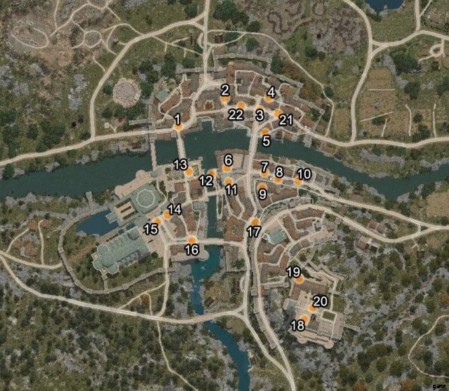 カルフェオン都市のクエストは、22 時間ごとに完了するか、毎日午前 0 時にリセットされます。これらは、バレンシア市のデイリー クエストを実行するのに十分な CP を持っていない場合に最適なデイリーです。ルート全体を完了するのに約 15 分かかり、合計で 1,500 以上の貢献 EXP を獲得できます。レベル 42 以上であればすべてのクエストを完了することができますが、追加の要件があるクエストはごくわずかです。ルートをたどるには、下の地図のポイント 1 から開始し、ポイント 22 まで順にたどってください。