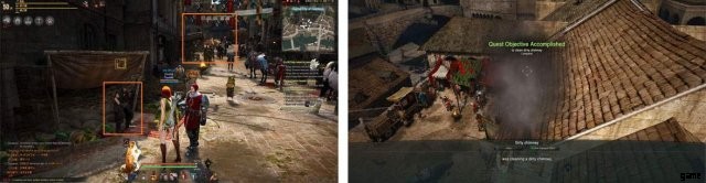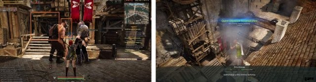 NPCはフルーツ屋台の角にあります。クエストを受け入れ、通りを駆け上がり、建物の裏を回ります。階段を上り、屋根に登ると煙突に着きます。 NPC の向かいにある屋台を使って屋根に登ることもできます。