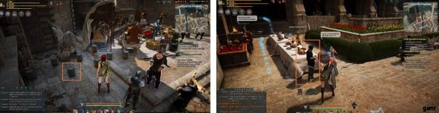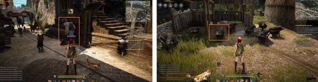 NPCの左側にあるバレルの1つを拾い、向きを変えて右側の通路を通過します.橋を渡ると、右側にアーチ道のある壁が見えます。ここを通り、目の前の建物を通り抜けます。ドアの向こう側に男性が見えます。この男性に樽を渡します。また、橋の前にバレルを落として、「貴族の護衛の世話」クエストを受け入れて、時間を節約することもできます.