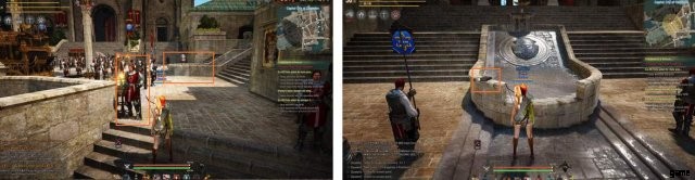 警備員からのクエストを受け入れ、彼の後ろにある噴水に行きます.噴水の側面に 2 枚のリーフレットが置かれています。それらの 1 つと対話し、警備員に戻ってクエストを完了してください。