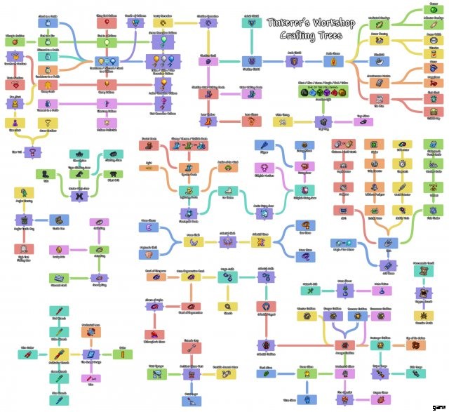 Tinkerer's Workshop で作成されたすべてのアクセサリの組み合わせのマインドマップ!