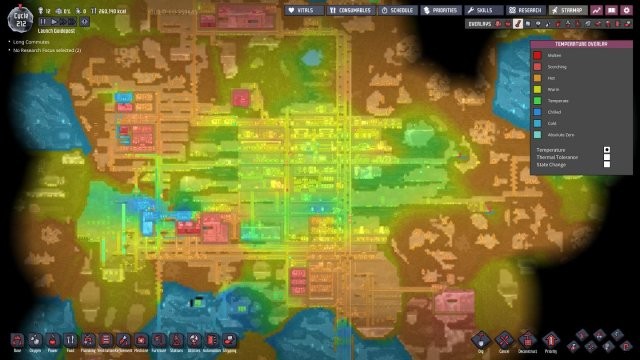 工業地帯のサイトの気温に注意してください。実際にはかなり寒くなりました。 Steam Turbine の冷却は非常に強力で、ゲームの初期段階で近くの Cool Water Vent から環境に放出された多くの熱を逆流し始めています。その領域の最も強い青色のスポットは、製油所の下の冷却剤タンクとその右側の蒸気タービンのセットアップによって積極的に維持されている露出した放射パイプの場所を示しています.