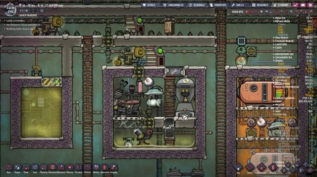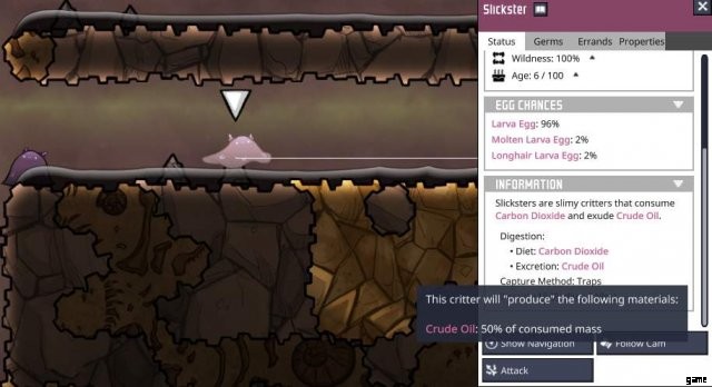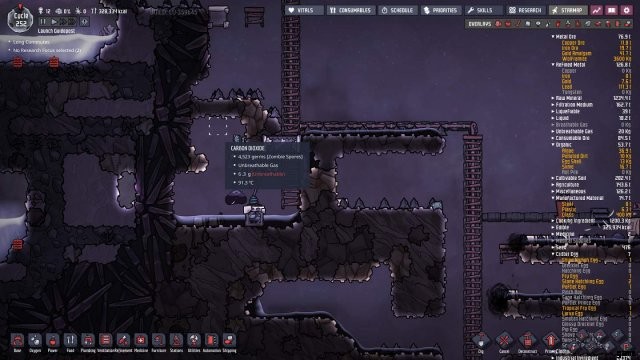 Until now, the base’s Carbon Dioxide has been managed by use of Carbon Skimmers. This converts some of our Water supply into Polluted Water, but it’s served us quite well for keeping a clean in-base environment for our Dupes. However, now that we’re connecting to the Oil biome, there’s a possibly better way to handle things – Slicksters!
