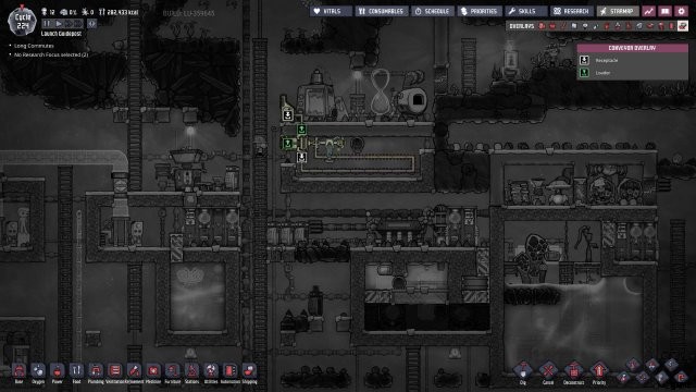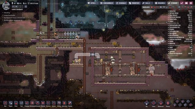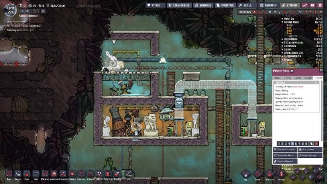 Unfortunately, very close to my Oil Biome entry there’s been this annoying Sporechid spewing Zombie Spore germs. The associated disease is no joke – it provides a -10 debuff to most of a Dupe’s stats!
