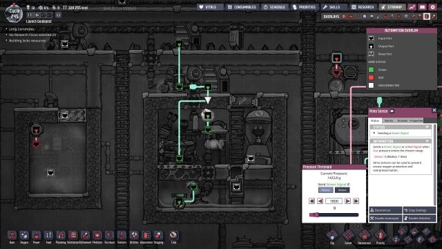 Also, depending on the pace you’ve been keeping, you may want to check your Hydrogen storage. My tanks are around 15 kg/tile at this point, so I took some time to add a Hydrogen Generator to the grid. It’ll run only when the storage area reaches over 19 kg/tile, preventing the storage from fully backing up.