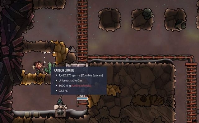 With germ counts that high, the germs are very likely to spread through the atmosphere. It would be best to not let them spread. Fortunately, there is a solution that can help prevent them from spreading – Slicksters love eating Carbon Dioxide, which will convert the germy CO2 into Crude Oil. Since Dupes don’t breathe Oil, this shouldn’t be an issue – especially since the germs don’t appear to transfer to the Oil anyway.
