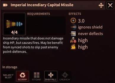 Imperial Incendiary Capital Missile をストレージに追加します。