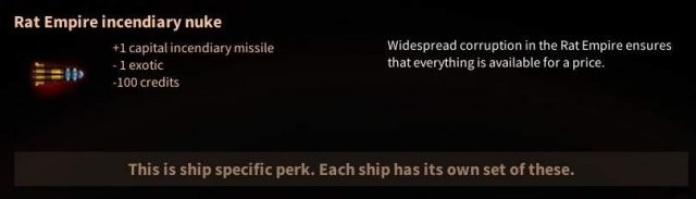 Rogue Rat で利用可能な船固有の特典