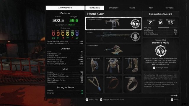 SMG をハンドガン スロットに入れたいのは、近距離でのコントロールと、ハンターズ マーク mod をスロットに入れる機能の 2 つです。 Hunter's Mark は、クリティカル チャンスを 1 分間 15% 増加させます。 Ruin は近接戦闘がかなり苦手なので、私たちを急襲する高速の近接敵は悪いニュースですが、SMG はその弱点を非常にうまくカバーします。