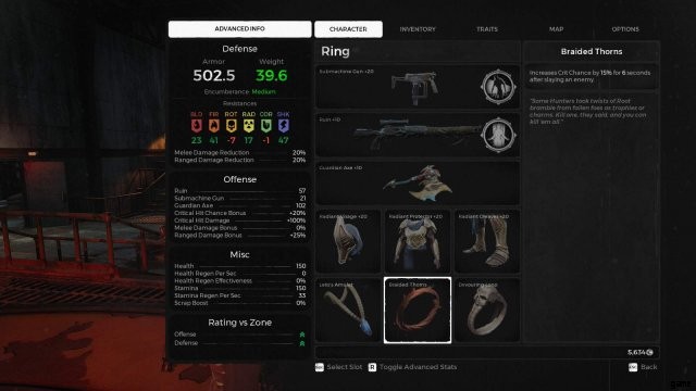 Braided Thorns は、敵を倒した後 6 秒間 15% のクリティカル チャンス ブーストを与えます。これは他の RPG ではうまくいかないかもしれませんが、このゲームのボスは追加されることを覚えておく必要があります。つまり、このリングからのボーナスは常にアップします!