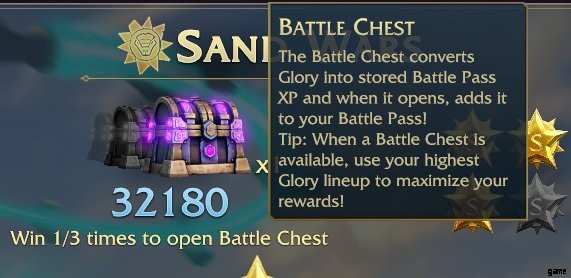 「バトルチェストが利用可能になったら、最高のグローリーラインナップを使用して、報酬を最大化してください!」.それは確かに良いヒントです。ゲームに感謝します!