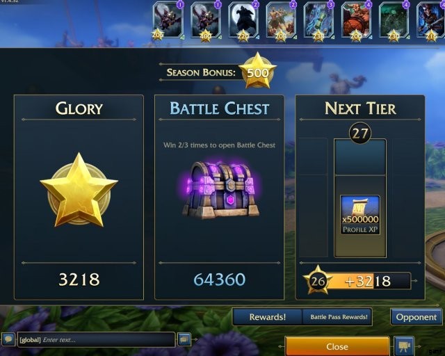 - シーズン ボーナスは、その上に +500 Glory を追加します (合計 3218)