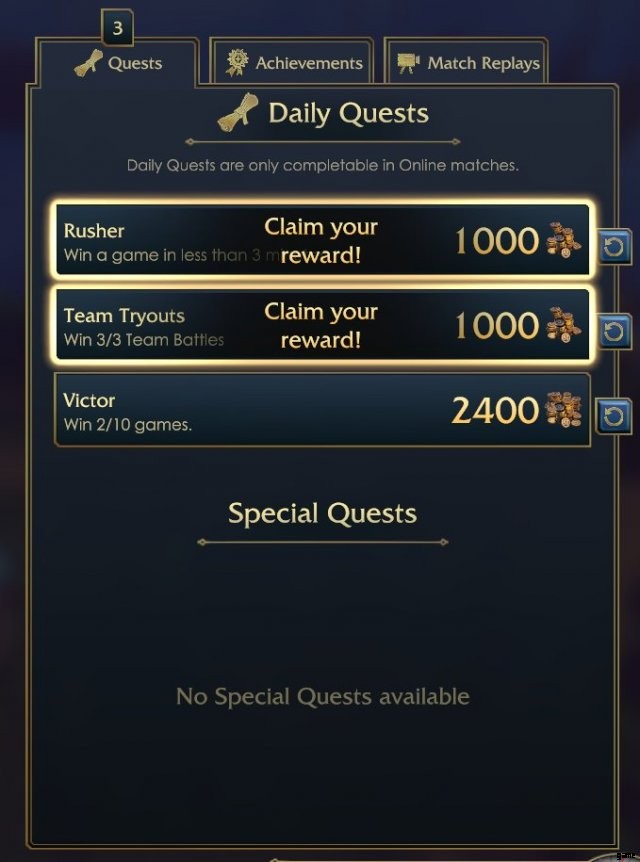 プロフィール (右下隅、LVL とプロフィール写真のアイコン) をクリックすると、[プロフィールとクエスト] ポップアップが開きます。右上隅にデイリー クエストが表示されます: