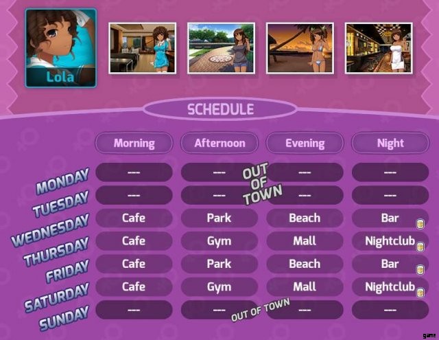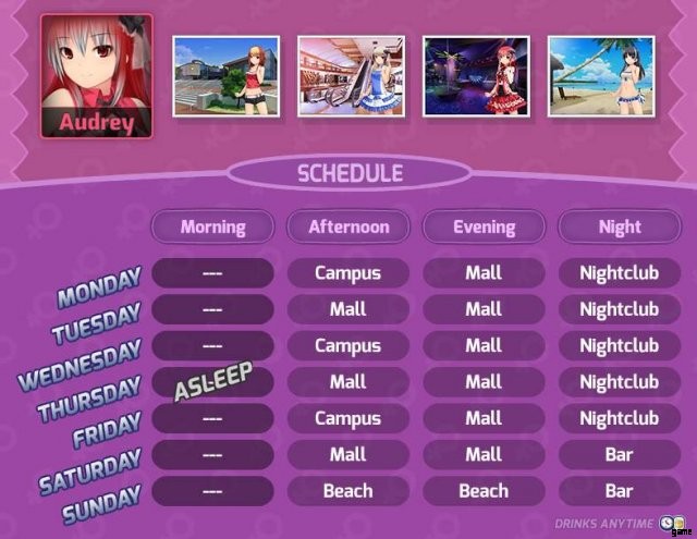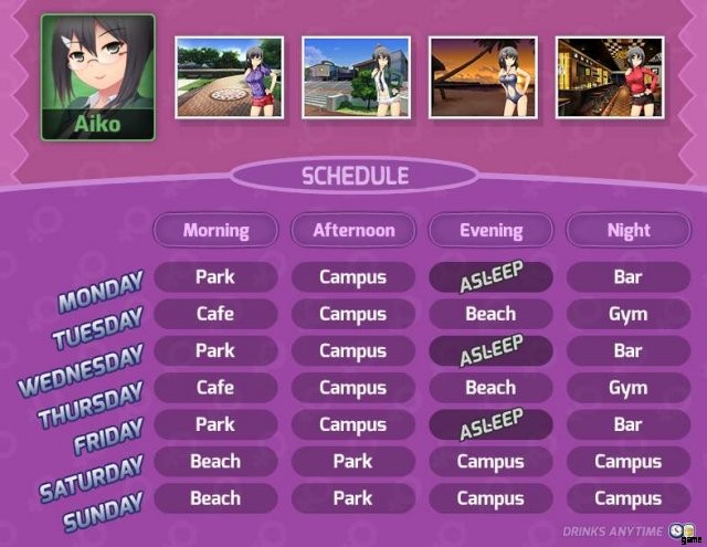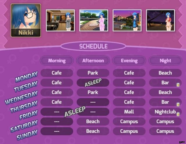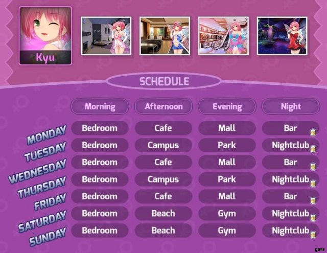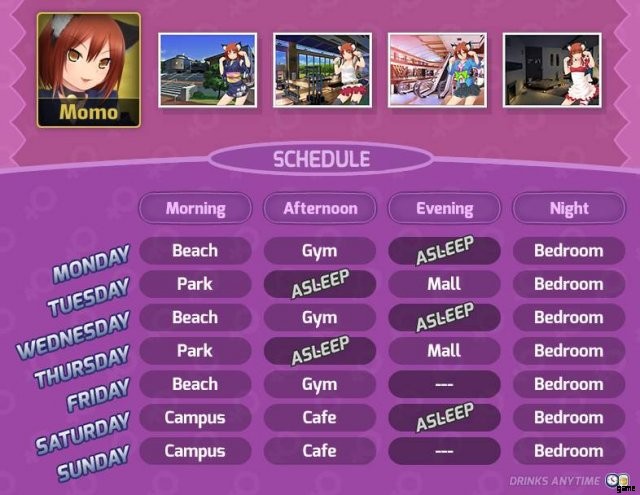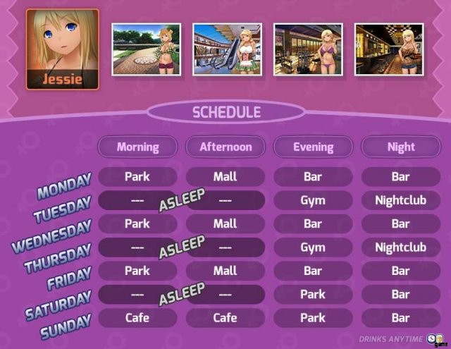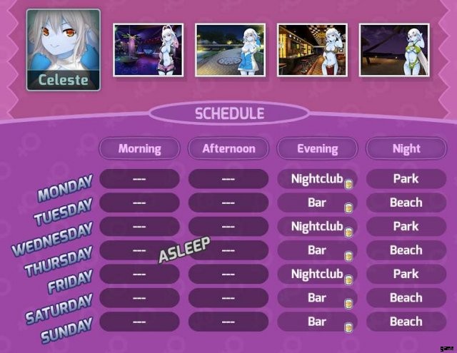 このガイドには、HuniePop の女の子向けにファンが作成した 12 のスケジュール ガイドが含まれています。これには、キャラクターが眠っている時間、町の外にいる時間、飲酒できる時間などが含まれます。この情報は、ルートや日程を計画する際に役立ちます。これらのガイドには 4 人の秘密の女の子が含まれているため、以下のネタバレにご注意ください.