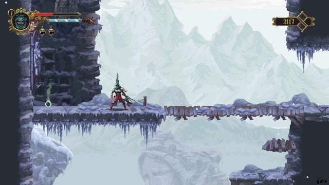 Lost Bones の 9 番目は、Olive Trees Wither から Peaks の Graveyard に渡って見つけることができます。最初の高いエリアから上に移動した後、右側の垂直の部屋に向かい、失われた骨が見えるまで左側に沿って木の壁を登り、右のプラットフォームにジャンプする前に風が吹くのを待ちます。 .