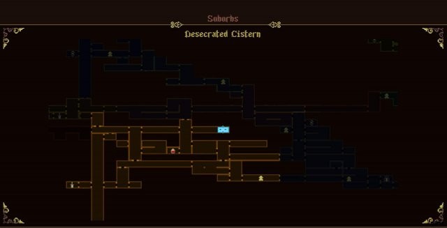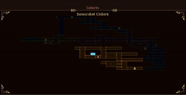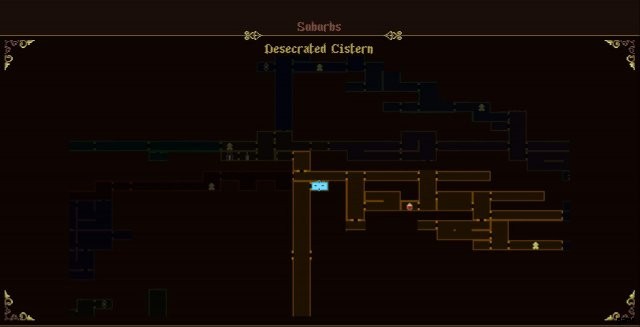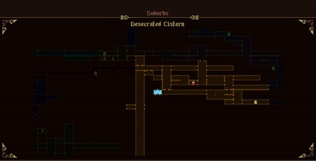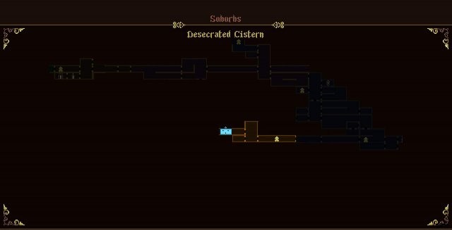 32. Desecrated Cistern, reachable either by dropping down from the Wasteland of the Buried Churches, using Linen of Golden Thread to survive the fall or by climbing up from the water using Nail Uprooted from Dirt. Alternatively, can be freed by using Taranto to My Sister from within the water or jumping from the platform to the left and using Fervorous Blood at the right timing.