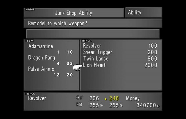 すべて揃ったら、武器屋に行って武器を「改造」するだけです。