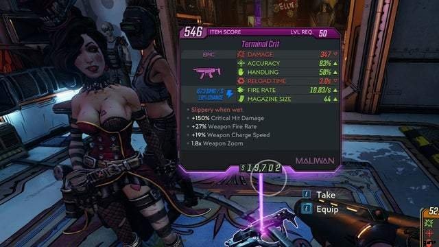 Sanctuary のバーのカウンターにある小さな小さな瓶を使用して、モクシィに感謝の気持ちを表す現金チップを渡すことができます…彼女がしていることは何でも。大量のお金で瓶をスパムすると、Moxxi は最終的に武器を提供します。彼女からメールで送られてくるので、ソーシャル メニューを開いてギフトを受け取ってください。武器はユニークで、フレーバー テキストには常に性的なほのめかしが伴います。