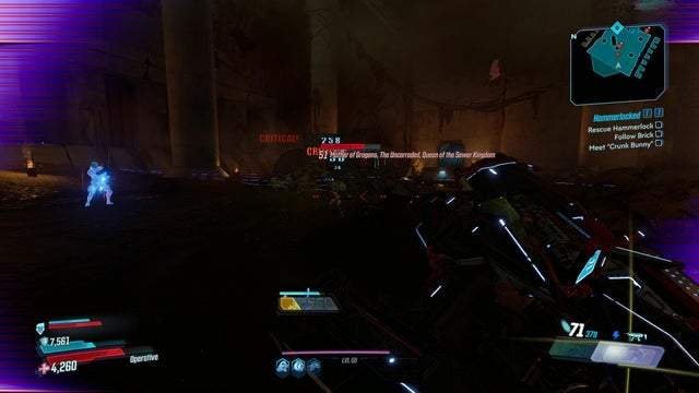 下水道にランダムに配置されたチェストを略奪していたところ、突然グロガンの母親がどこからともなく現れ、火を吐くラックスをあなたに向けて病気になったことはありませんか?ええ、いつも起こります。 Eden-6 のこのオプション エリアを移動すると、ゲーム オブ スローンズのあまり微妙ではないリファレンスに出くわします。グロガンの母、腐食されていない下水道王国の女王があなたの前に現れ、彼女の 3 つのドラゴンのような Rakks を病気にします。気をつけないと火を吐きます。