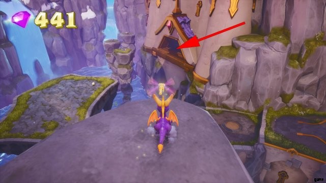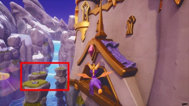 Alpine Ridge の出口に到達すると、その隣に棚があり、そこから救出する別のドラゴンがいる隠された洞窟に滑り込むことができます。入り口まで滑空することも、爆破チェストまでまっすぐ進むこともできます。最初の爆発チェストに火をつけた後、次のチェストにジャンプし始めることを覚えておいてください。爆風に巻き込まれると水に落ちてしまうからです。