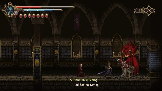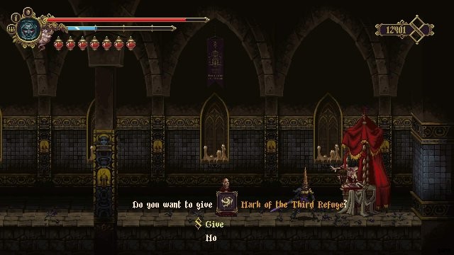 彼はここ大聖堂の屋上に移動します。彼と 2 回話して、Crossing Souls の実績のために彼を自殺させるか、アルベロの最終エリアに移動するために彼に真の埋葬のコードを渡すことができます。 (注:Crossing Souls の実績を取得している場合、このクエストラインで奇跡を取得できないため、100% を取得することはできません)。一度彼に話しかけると、部屋を出て部屋に入ると、彼はいなくなるか、達成している場合は狂った悲鳴が聞こえ、彼が屋根から飛び降りたことがわかります