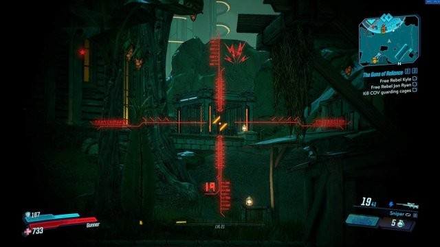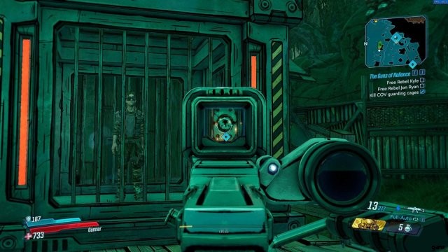 南東の檻を守っている COV を倒して反乱軍のカイルを解放する。カイルを檻から解放するには、ゲートの横にあるパネルを撃ってください。