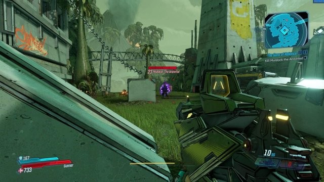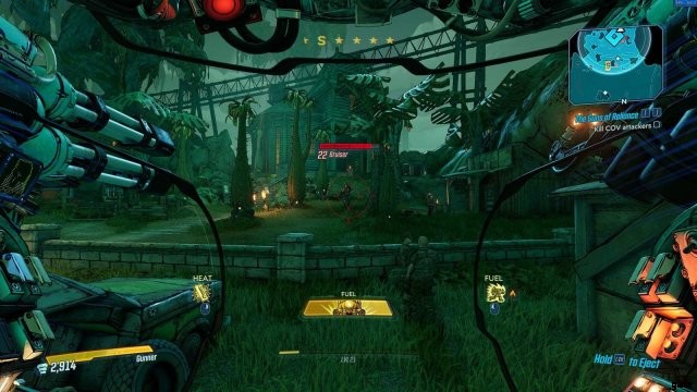地域に電力が回復したので、フォート サンシャインに向かってガンスミスを救出してください。エリアに近づくと、頭上のドロップ シップによってスポーンされる複数の COV 敵に遭遇します。