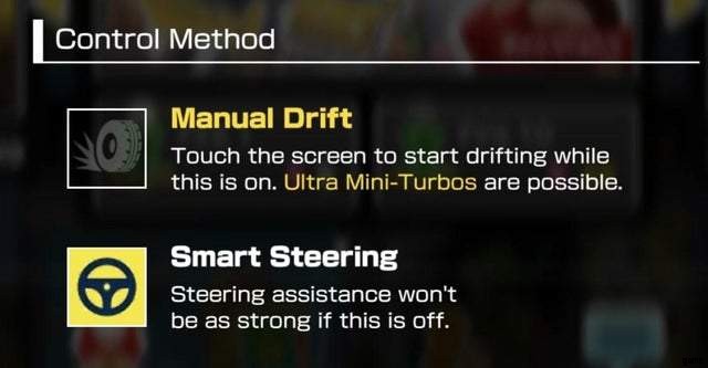 スマート ステアリングは、マリオカート ツアーの設定のオプションで、コースのカーブや曲がり角でカートをガイドするのに役立つ一種の目に見えない手として機能します。