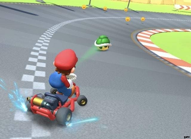 マリオカートでドリフトするには、曲がる方向に画面を指で押し続けるだけで、数秒後にタイヤから白い煙が出ます.その煙は青、次にオレンジ、そして最後に紫に変わります。これらの色のいずれかが画面に表示されたら、指を離してターボ ブーストを行います。
