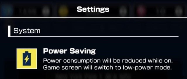 ここで、右下隅にある設定ボタンを選択します。省電力と呼ばれるシステム設定が表示されます。これを選択すると、ゲームは省電力モードになり、ゲームのプレイ中にバッテリーを節約します。