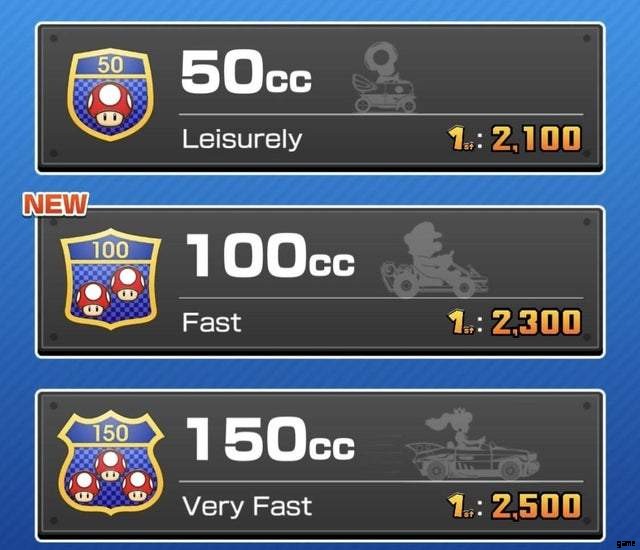 マリオカート ツアーでは、デフォルトで 50cc でレースが行われます。最終的にグランド スターにつながるポイントに飢えている場合は、レースの CC を増やしてください。