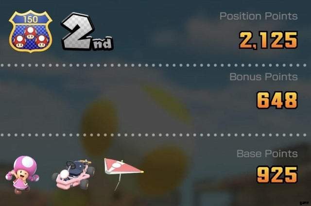 50cc では、1 位になると 2100 ポイントを獲得できます。 100cc では 1 位で 2300 ポイント、150cc では 2500 ポイントを獲得できます。