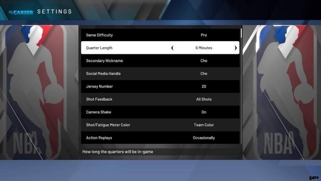 NBA 2K20 の MyCareer の 4 分の 1 の長さを調整することは、やや直感に反します。