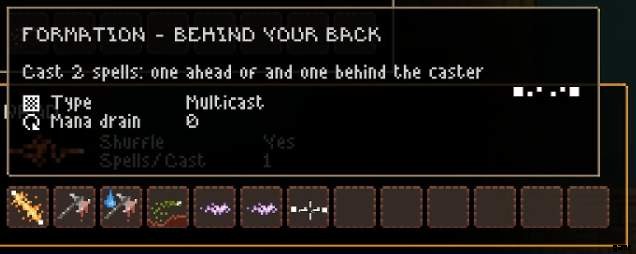 攻撃呪文は、攻撃が正しい場合にのみフォーメーション/パッシブ効果を使用します。左側にパッシブ エフェクトを配置します。ワンドを使用している間は、左から右に移動することに注意してください。ただし、これはシャッフルなしのワンドのみです。