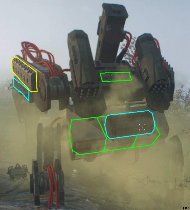 メイン アーマー プレートを破壊すると、サイド レッグ コントローラーの側面がアーマーで覆われていることに注意してください。