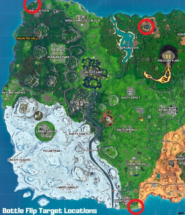Fortnite Battle Royale – 巨大な魚、ラマ、ブタの近くのターゲットにボトル フリップを当てる (シーズン 10)