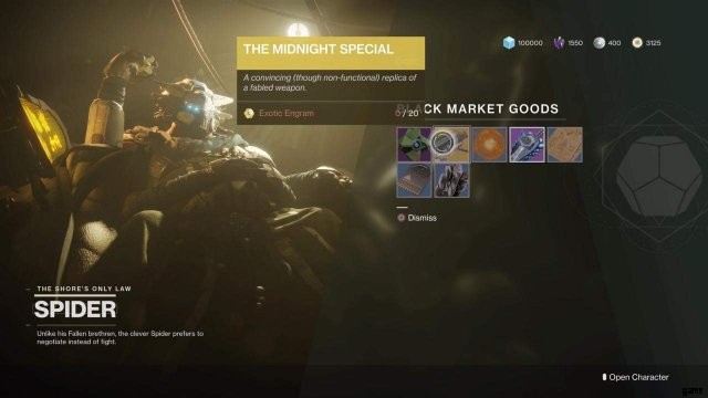 「ミッドナイト スペシャル」と改名され、20 エキゾチック エングラムで購入できます。ただし、一度に 10 個を超えるエングラムを運ぶことはできない (またはできる?) ため、Spider からレプリカを購入することはできません。