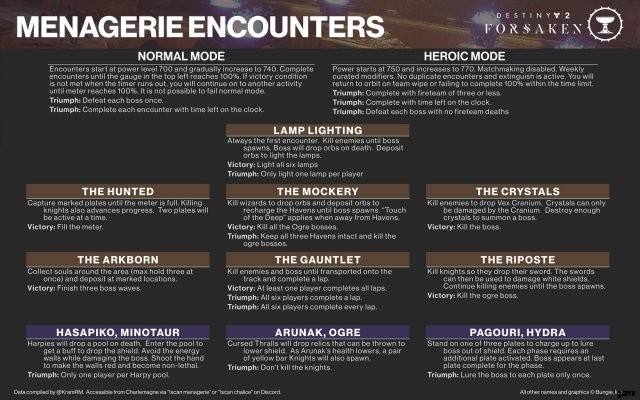 パワーは 750 から始まり、770 まで増加します。マッチメイキングは無効です。毎週厳選された修飾子。重複した遭遇はなく、消火がアクティブです。チームワイプまたは制限時間内に 100% 達成できなかった場合、オービットに戻ります。