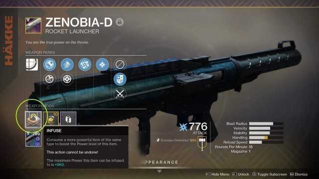 パワーアップのためにアイテムを別のアイテムに注入するには、注入ボックスにカーソルを合わせる必要があります。