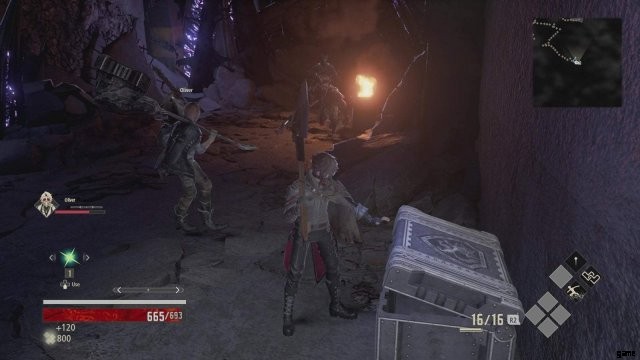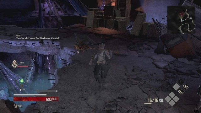 オリバーは、旅の途中で敵を倒すのに役立つ多くの仲間の 1 人です。先の直線的な道をたどり、ジャンクションで右折して最初の敵を倒してください。