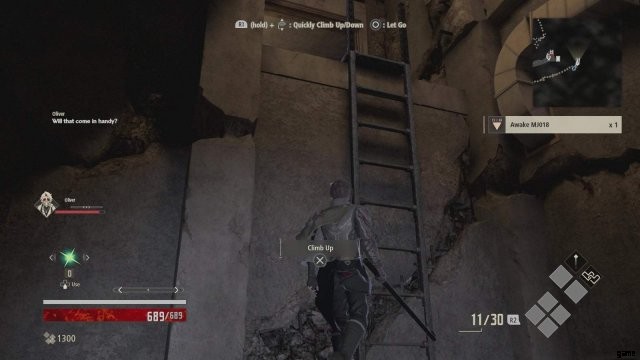 すぐ先にはしごがあるので、それを登って次のセクションに行きます。そのまま進むと、下に続くはしごにたどり着きます。